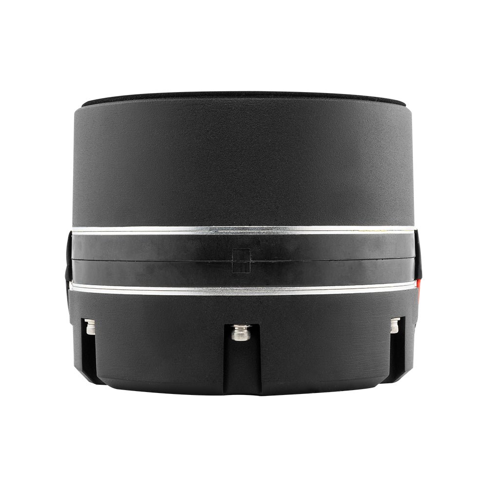 DS18 PRO-DRNMD 2″ Throat Bolt On Neodymium Compression Driver Dual Polyester 2 x 3.5″ VC 880 Watts 123Db 8 Ohm If you are needing a driver to slay your mid high frequencies the PRO-DRNMD is exactly what you are looking for!This midrange neodymium driver plays insanely loud from 250Hz to 12.5KHz, picking up all mid high frequencies with amazing precision.The neodymium driver is rated at 220w AES and 880w Peak power so you know this driver gets crazy loud with the correct power. Highlights Neodymium motor structure for higher sensitivity and efficiency. Midrange high driver to give ear piercing mid high frequencies at your command. Strong 3.5′ CCAW voice coil to ensure long life and peak performance. Technical Details Download PRO-DRNMD Product Manual Specifications Throat Diameter 2″ / 50.8mm Installation Type Bolt-on Nominal Impedance 8 Ohms Peak Power Handling 880W Program Power Handling 440W AES Power Handling 220W Sensitivity (1w/1m) 123dB Frequency Response 250Hz – 12.5KHz Recommended Crossover 600Hz Motor Voice Coil Diameter Dual 3.5″ / 90 mm Voice Coil Former Materia Kapton Winding Material CCAW Diaphragm Material Polyester Magnet Material Neodymium Measurements Overall Diameter 5.2″ / 132mm Overall Depth 4.17″ / 106mm Bolt Pattern M6 – 4″ / 102mm