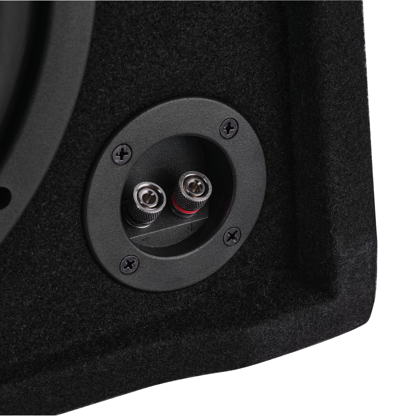 DS18 DFPU110iXUnder-Seat Sealed 10” Shallow Subwoofer Enclosure The DFPU110iX is DS18’s low-profile solution for adding real bass in tight spaces. This compact sealed enclosure is pre-loaded with a single 10” shallow-mount subwoofer: for deep, clean low-end even when space is at a premium. Built for Any RigPerfect for under-seat installs, this enclosure was made for the real-world setups in Jeep Gladiators and pickup trucks. With a durable black carpet finish, it blends seamlessly into your interior without screaming for attention. Slim Box, Big OutputBuilt from tough ¾” MDF, the DFPU110iX handles 600W RMS / 1200W MAX and features a 2-ohm final impedance for easy amp pairing. Tuned for a 30Hz drop point, it hits the lows without mud or rumble. And with a 0.32 ft³ sealed volume, the box keeps response tight and musical. Speaker Specs That MatterInside the box, the loaded 10” sub uses a 2.5” black aluminum voice coil, glass fiber dust cap, and non-pressed paper cone for that signature DS18 LOUD you’ve been looking for. Finished with a rubber surround and ferrite magnet, it’s all performance—no compromise.