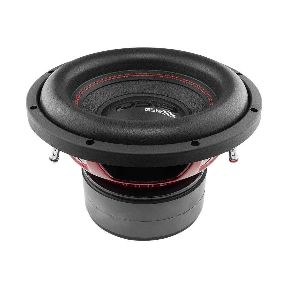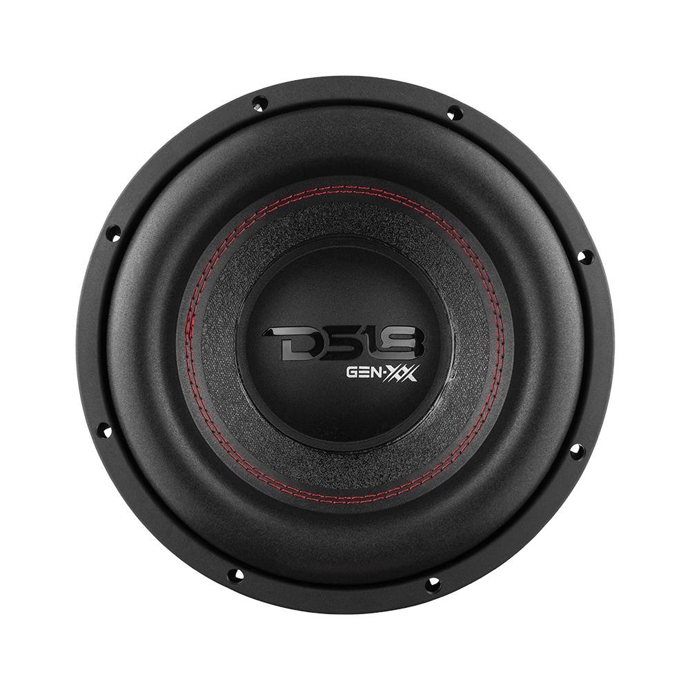 DS18 GEN-XX10.4DHE X 10″ High Excursion Car Subwoofer 1000 Watts 4-Ohm DVC Double Magnet High excursion is now the mainstream and usually this feature is very expensive, and enthusiasts sometimes miss out on amazing bass because of the large cost. We want to bring the experience of low frequency bass to even the entry level user. The GEN-XX10.4DHE is the answer to that issue. This subwoofer is a mid-tier addition that comes in at an amazing price point while getting all those features other much more expensive high excursion subs come with. Also, with a power rating of 500w RMS and 1000w Max this sub does not require large amounts of power to come alive and beat up the block. Highlights High Excursion surround for a very high amount of xmax. Great power handling of 500w RMS and 1000w max. Long three voice coil and extended magnet to accommodate the xmax increase. FS of 37.6 Hz so you can easily dip in the subsonic range with no issues along as your box is tuned correctly. Technical Details GEN-XX10.4DHE Product Manual Nominal Diameter 10 Nominal Impedance 4+4 ohms RMS Power Handling 500W MAX Power Handling 1000W Sensitivity (1w/1m) 84.6 dB Frequency Response 20Hz – 1.1KHz Recommended Lo Pass Crossover 90Hz Motor: VC Diameter 2 VC Former Material Black Aluminum Winding Material SV Cone Material Paper Dust Cap Material PPI Surround Material Foam Basket Material Steel Basket Color/Finish Glossy Red Magnet Material Ferrite Magnet Weight 136 Oz Displacement Volume 1.82L Thiele & Small Parameters Equivalent Vol Vas 16.583L Excursion (one way) Xmax 25 mm Free Air Resonance Fs 37.6 Hz Mechanical Factor Qms 4.705 Electrical Factor Qes 0.476 Total Factor Qts 0.432 Moving Mass Mms 166.794g Compliance Cms 0.107mm/N Bl Factor BL 23.041N/A VC Inductance Le 0.6741mH Diaphragm Area Sd 330.64cm2 Dc Resistance Re 3.2+3.2 ohms Efficiency Bandwidth Product EBP 78.99 Measurements Overall Diameter 10.28 / 261 mm Overall Depth 7.21 / 183 mm Front Mount Baffle Cutout 9.14 / 232 mm Mounting Depth 6.15 / 156mm Motor Diameter 6.15 / 156mm Box Info