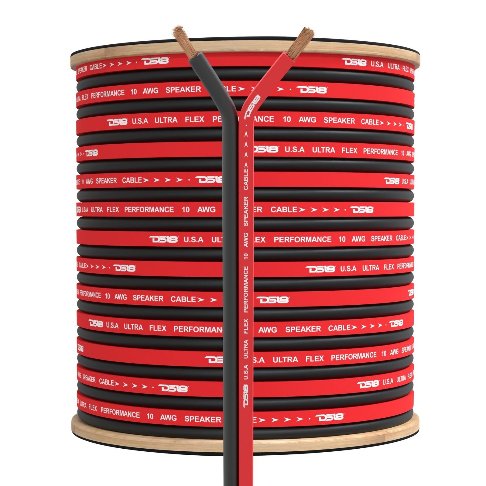 DS18 SW-OFC10GA-250RB OFC 10-GA Speaker Wire 250 Feet Your sound system is only as good as its connections. Guarantee stable connections between all your systems components by using DS18’s Premium High Performance Ultra Flex Speaker Wire. The integration of Oxygen-Free Copper in our speaker wires allows our wires to run cooler during longer jam sessions, increases the wire’s resistance to negative electrical effects, and protects your wires from corrosion due to their decreased oxygen content. This black and red jacket covered 10-Gauge speaker wire gives your system the optimal current flow needed to charge your system to the MAX! Highlights 10-Gauge High Quality Oxygen-Free Copper Speaker Wire 250 ft. Long Spool Ultra Flex High Performance Application Great For Car Audio Motorcycles Off-Road Home Application DIY Projects