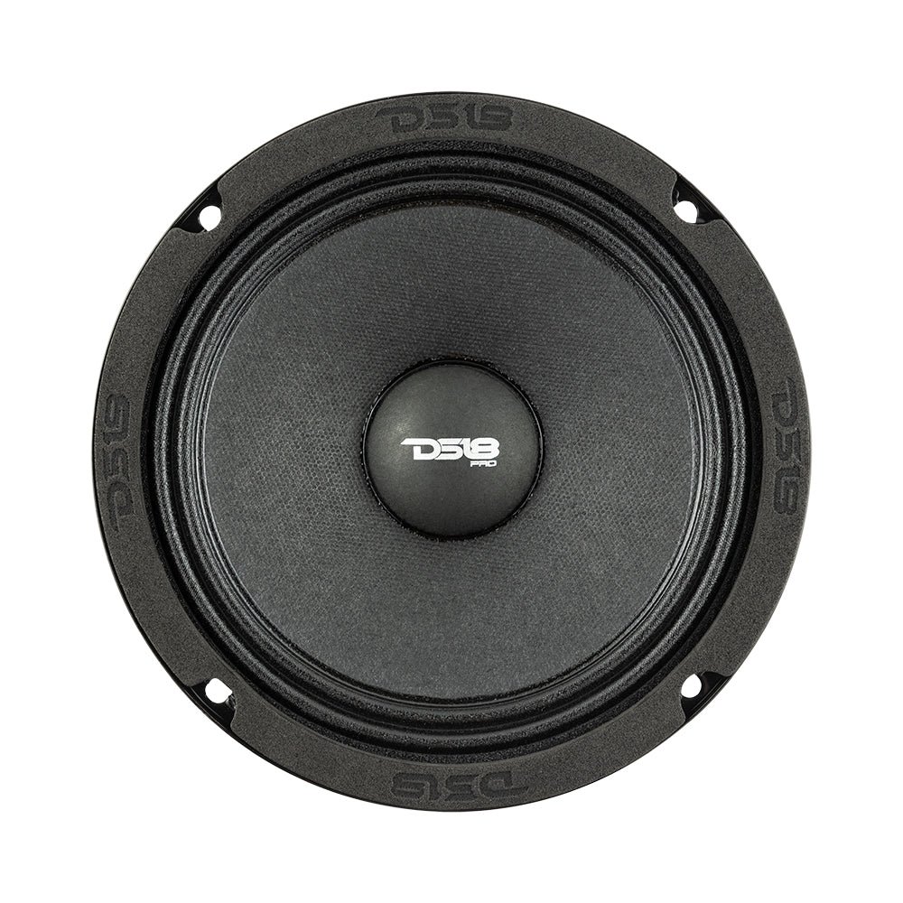 DS18 PRO-NS6 6.5″ Shallow Neodymium Mid-Range Loudspeaker 300 Watts 8-Ohm DS18’s new Neodymium shallow speakers were designed to give you maximum loudness and volume all while keeping a nice small framed package. Most neo speakers are full size and take up a good amount of mounting depth, with these new Neo slim speakers, you can get that insane neodymium loudness where there is not much room for full size speakers. This 6.5 inch neodymium 1.5″ voice coil Mid-Range speaker takes 150w RMS and 300w peak power, so you know they will get loud easily. The 94dB sensitivity rating will be sure to give you plenty of volume as well for years and years of enjoyment. Highlights Neodymium Slim design so now you can get all that neodymium power and volume in a slim frame. High efficiency 1.5 inch voice coil that handles 150w RMS and 300w peak power for extreme loudness and frequency precision. Shallow mounting depth of only 1.96 inches, these neodymium midrange speakers can fit almost anywhere you need great sound and max volume. Technical Details PRO-NS6 Product Manual Nominal Diameter 6.5″ / 167mm Nominal Impedance 8 Ohms RMS Power Handling 150W MAX Power Handling 300W Sensitivity (1w/1m) 94 dB Frequency Response 100Hz – 12KHz Recommended Hi Pass Crossover 180Hz Pair or Single Single MOTOR 1.5”/38.6 mm Voice Coil Diameter KSV Voice Coil Former Material Copper Winding Material Paper Cone Material Paper Dust Cap Material Cloth Surround Materia Steel Basket Material Glossy Red Basket Color Neodymium Magnet Material 1.79 Oz Magnet Weight THIELE & SMALL PARAMETERS Equivalent Volume 4.8L / 0.169ft3 Excursion (one way) 2 mm Free Air Resonance 139 Hz Mechanical Factor 5.781 Electrical Factor 1.245 Total Factor 1.025 Mechanical Mass 6.498g Mechanical Compliance 192.236m cm/N BL Factor 5.38 Voice Coil Inductance 5.1455mH Cone Area 132.732 Cm3 DC Resistance 6.5 ohms Mechanical Mass w/o air/ 8.9g MEASUREMENTS Overall Diameter 6.57” / 167mm Overall Depth 2.2” / 56mm Front Mount Baffle Cutout 5.7” / 145mm Mounting Depth 1.96” / 50mm Motor Diameter 4” / 103mm
