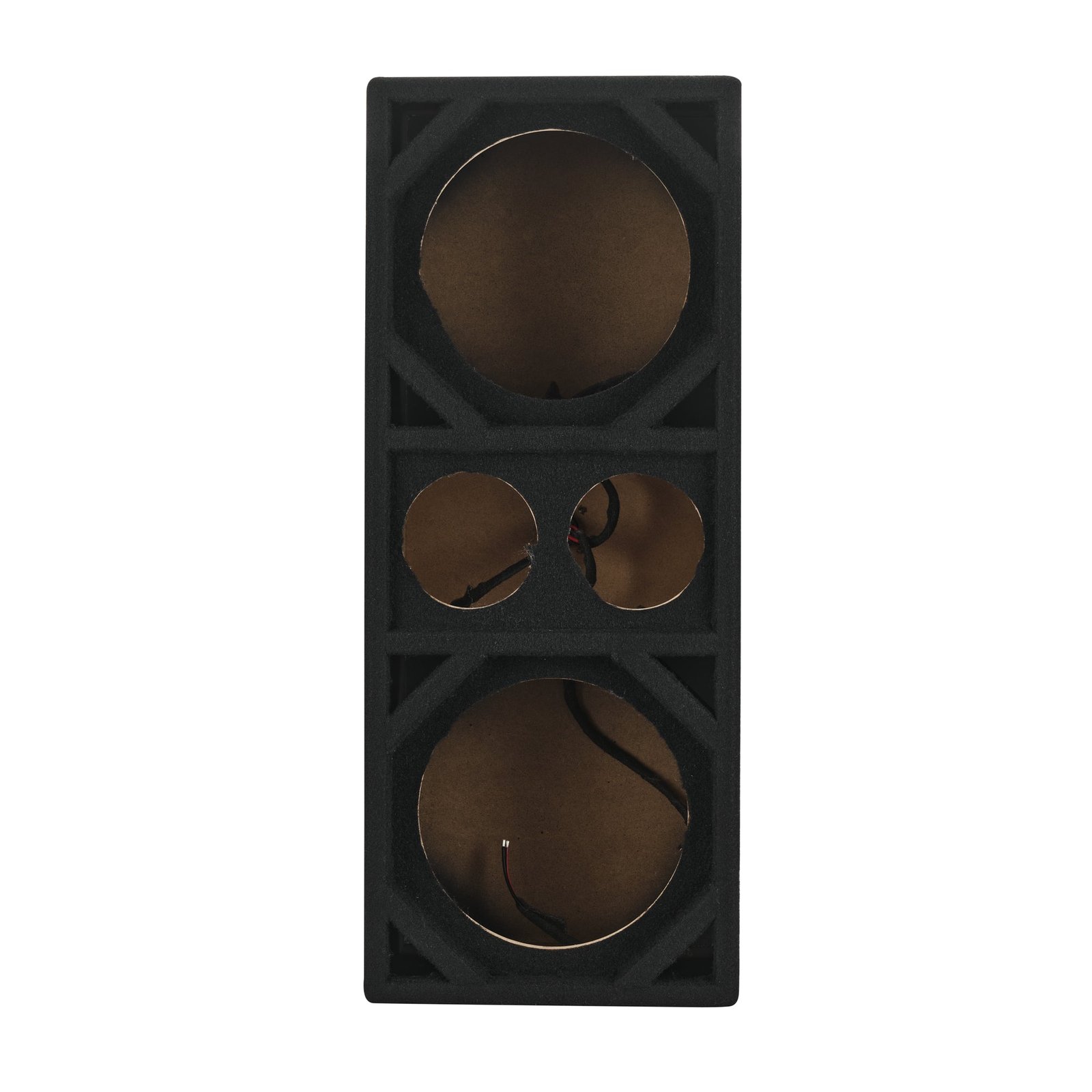 Dual 8” + Dual 4” Tweeter Ported Voceteo Enclosure | Speakon-Ready DS18’s VOC8PRO is a compact, ported enclosure engineered to deliver ultra-clear vocals and highs in any build. Designed to house two 8” midrange speakers and two 4” tweeters, this ported enclosure is perfect for vocal-heavy setups where space is limited but volume can’t be compromised. Designed for Easy WiringWith a built-in Speakon terminal and included 12ft OFC Speakon cable, the VOC8PRO lets you plug and play straight into your amp system. The midrange drivers are wired in parallel, while the tweeters are connected in series—a setup optimized for consistent power handling and frequency response. Lightweight, Loud, and Ready to MountConstructed from ½” MDF and wrapped in black carpet, this box is lightweight but tough enough for mobile or static sound systems. The internal volume of 0.648 ft³ ensures your mids perform with clarity, while the ported design enhances projection.